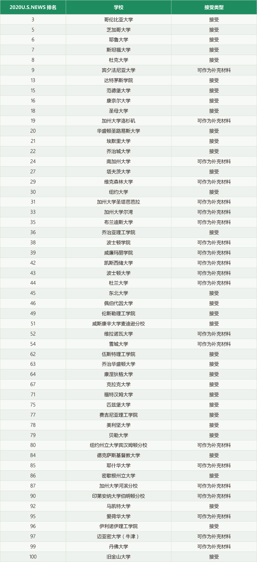 ① 接受多邻国英语测试成绩的院校共计33所 ② 接受多邻国英语测试成绩作为补充材料的院校共计21所X您的信息提交成功,稍后啄木鸟教育留学申请专家会与您联系,请保持手机畅通。