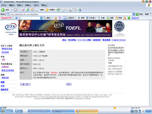 一个完整的托福网考报名,须按顺序完成下列步骤: