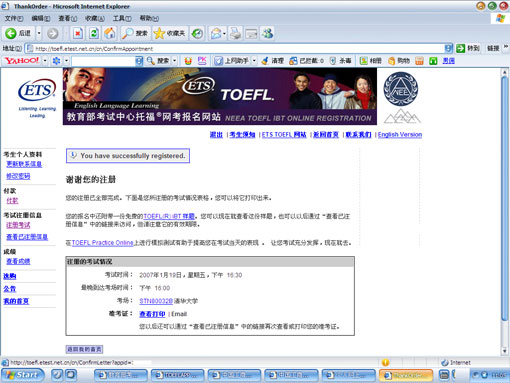 至此,您已完成托福网考考试报名!